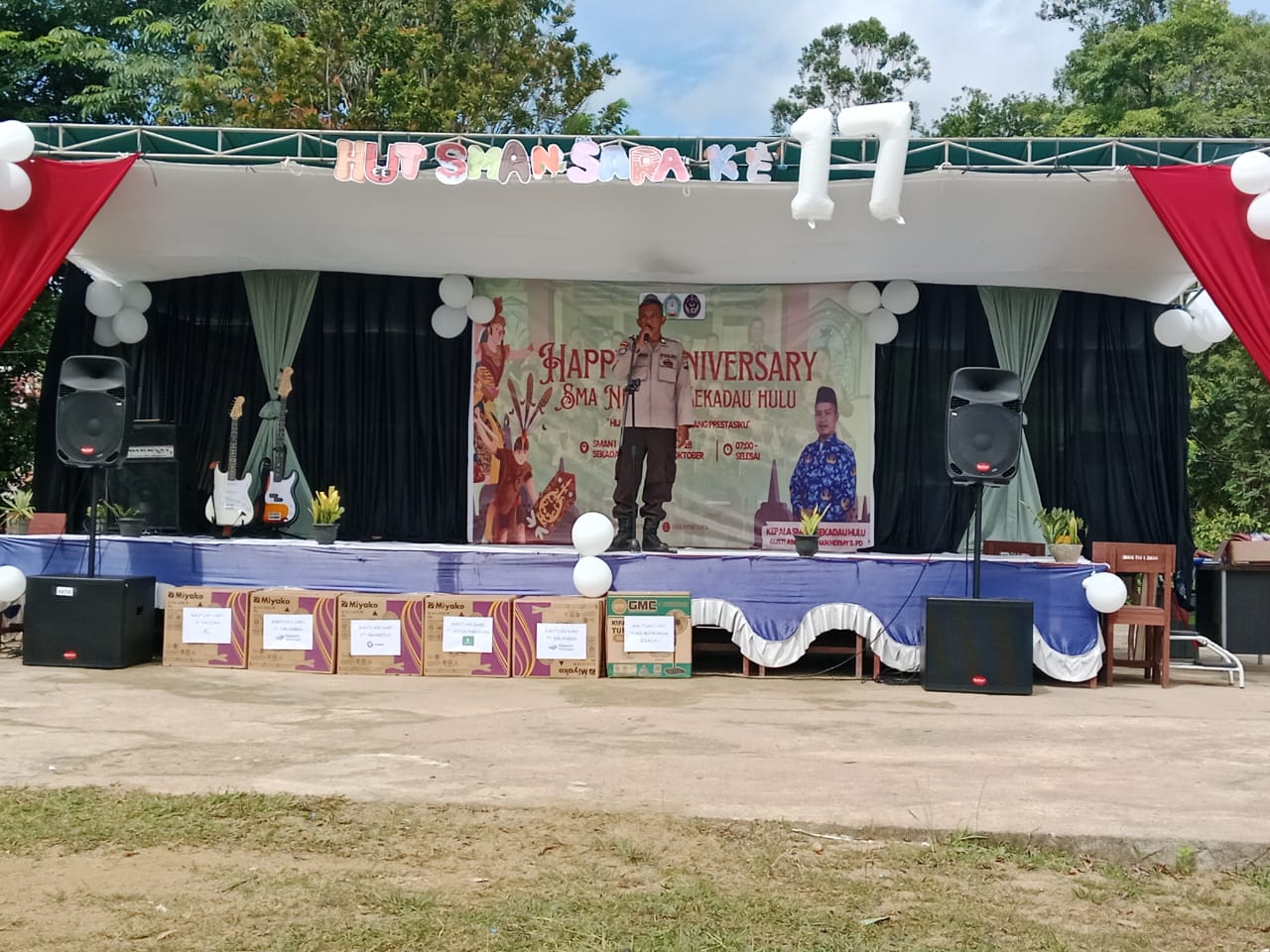 Kanit Binmas Polsek Sekadau Hulu, Aipda Hendra, menghadiri kegiatan peringatan Hari Ulang Tahun SMA Negeri 1 Sekadau Hulu yang berlangsung di halaman sekolah, Desa Rawak Hilir, Kecamatan Sekadau Hulu, Kabupaten Sekadau, Rabu (29/10/2025).