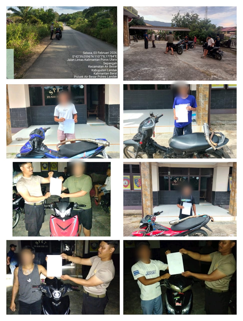 Dengan tegas namun humanis, petugas Polsek Air Besar langsung menghentikan aksi tersebut. Para pelanggar kemudian diberikan pembinaan di tempat dan diminta membuat surat pernyataan yang berisi komitmen untuk tidak mengulangi perbuatan balap liar serta tidak lagi menggunakan knalpot brong yang melanggar aturan dan mengganggu ketertiban umum.