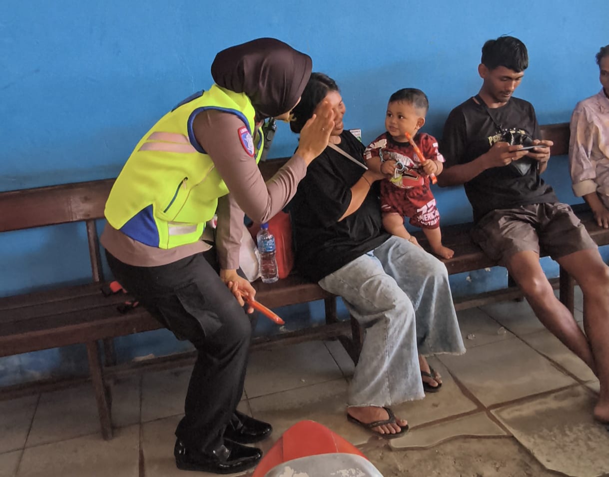 Momen tersebut terjadi pada Kamis (25/12/2025). Dengan seragam dinas dan rompi keselamatan, Polwan cantik dengan senyum manis itu tampak bermain dan menenangkan anak kecil, seolah menghapus rasa lelah dan canggung warga yang tengah menunggu. Kehadiran polisi pun terasa lebih dekat dan bersahabat.