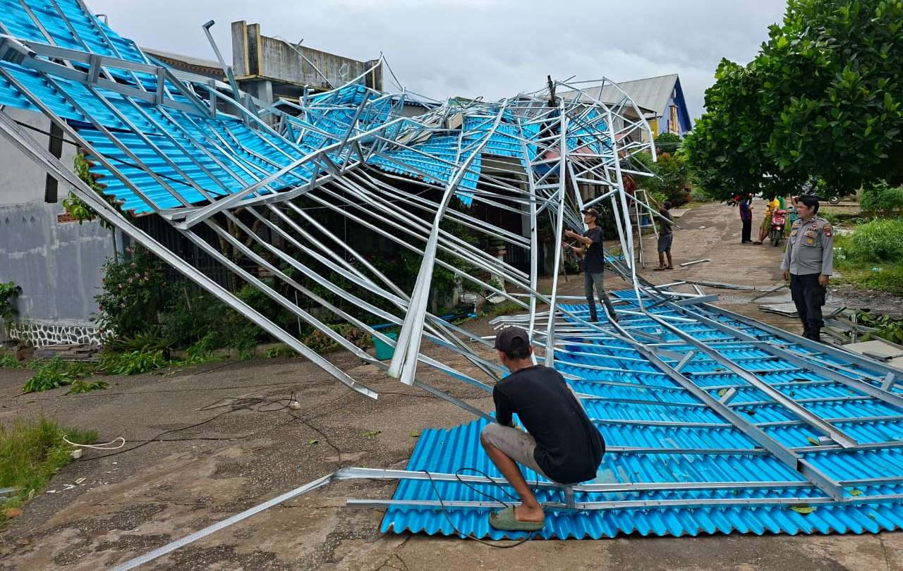 Hasil peninjauan di Jalan Karya Bakti, Dusun Pusat Damai, menunjukkan dua atap ruko terlepas dan terbawa angin hingga sekitar 25 meter. Atap berukuran 8 x 20 Meter berbahan seng dan rangka baja ringan itu sempat menimpa teras rumah warga serta menutup sebagian area persimpangan jalan.