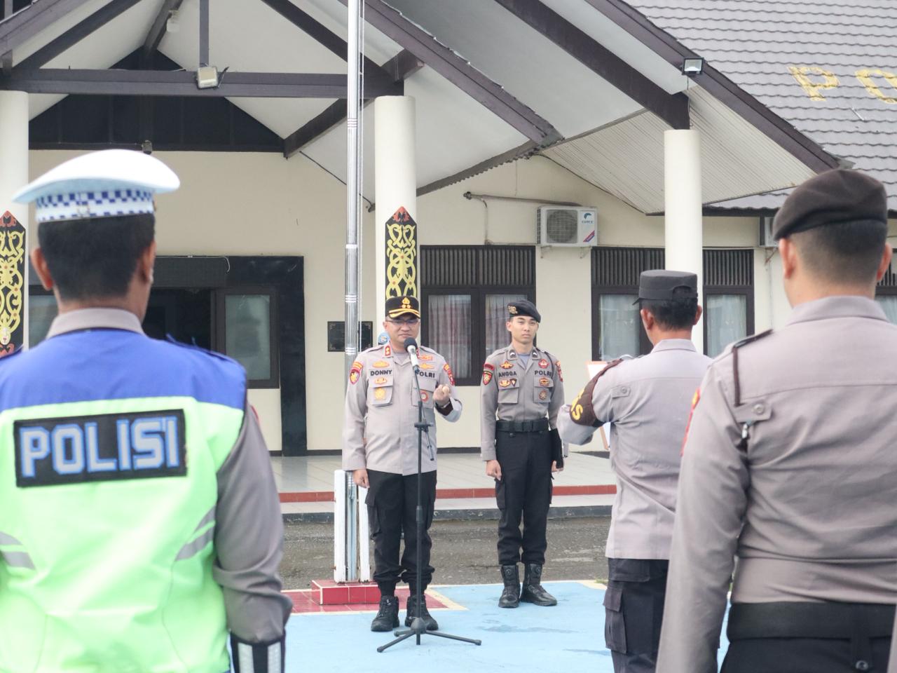Kapolres Sekadau AKBP Donny Molino Manoppo mengingatkan seluruh personel Polres Sekadau untuk menjaga kesehatan dan meningkatkan kewaspadaan terhadap potensi banjir menjelang Operasi Lilin Kapuas, yang digelar untuk pengamanan Natal dan Tahun Baru 2026.