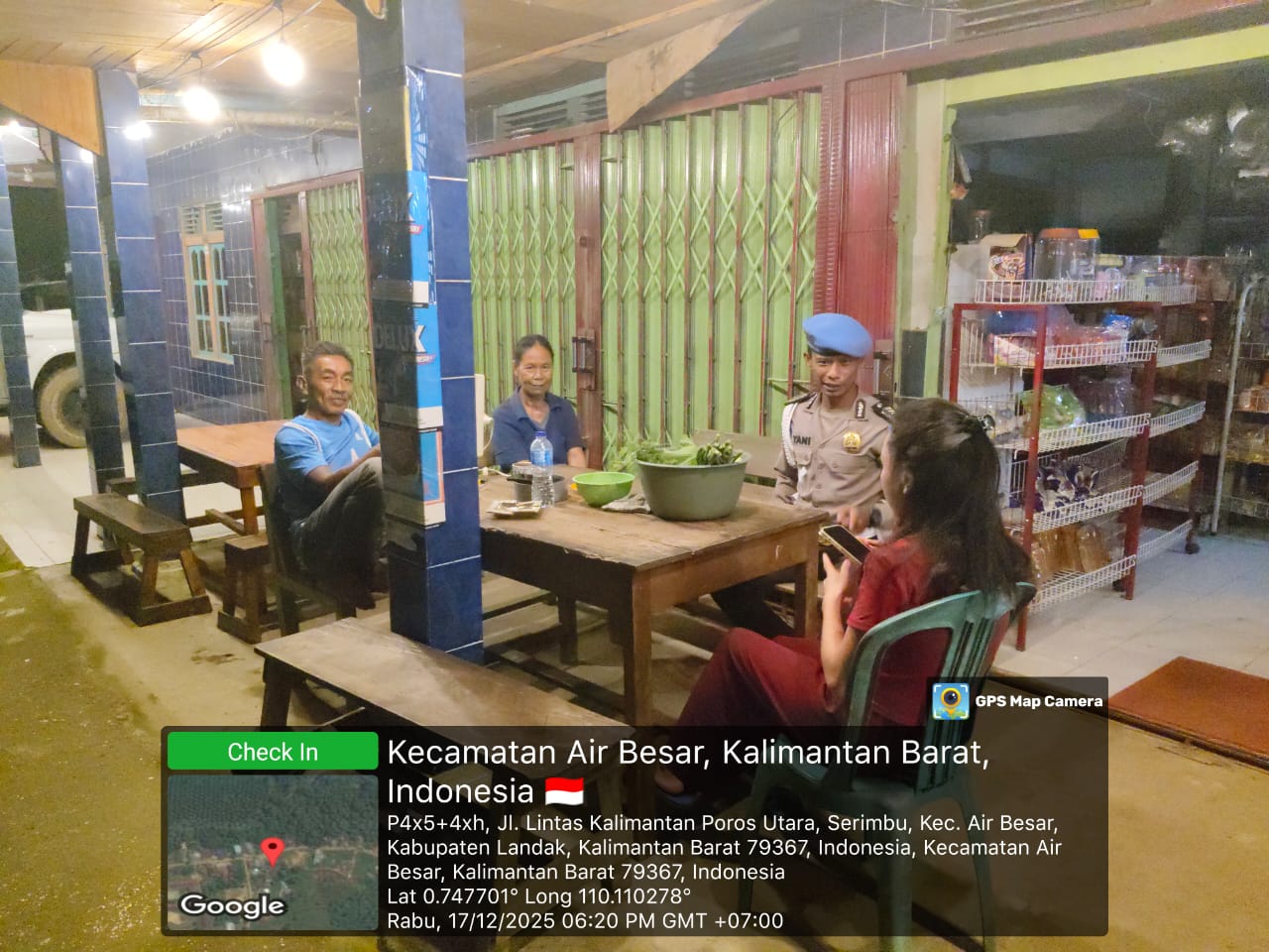 Polsek Air Besar ~ Polres Landak ~ Polda Kalbar ~ Di bawah sinar rembulan yang menerangi malam, suasana Kecamatan Air Besar tampak tenang dan penuh keakraban. Pada Rabu (17/12/2025), jajaran Kepolisian Sektor Air Besar melaksanakan patroli malam sembari menyapa dan berdialog langsung dengan warga yang masih beraktivitas.