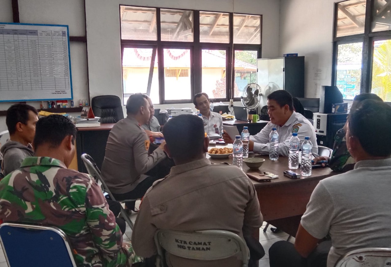 Forkopimka Nanga Taman bersama TNI–Polri, pemerintah desa, dan tenaga kesehatan menggelar koordinasi penanggulangan banjir dan longsor (Batingsor) di Kantor Camat Nanga Taman, Sekadau, Kalbar, Kamis (11/12/2025).