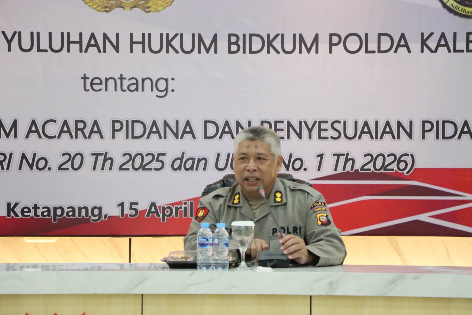 Bidang Hukum (Bidkum) Polda Kalbar menggelar sosialisasi dan penyuluhan hukum dengan membahas materi terkait “ Transformasi Hukum Acara Pidana Dan Penyesuaian Pidana ”. Sosialisasi digelar di Aula Bhayangkara Polres Ketapang Jalan Brigjend Katamso Ketapang pada Rabu pagi (15/04/2026) Pukul 08.30 Wib.