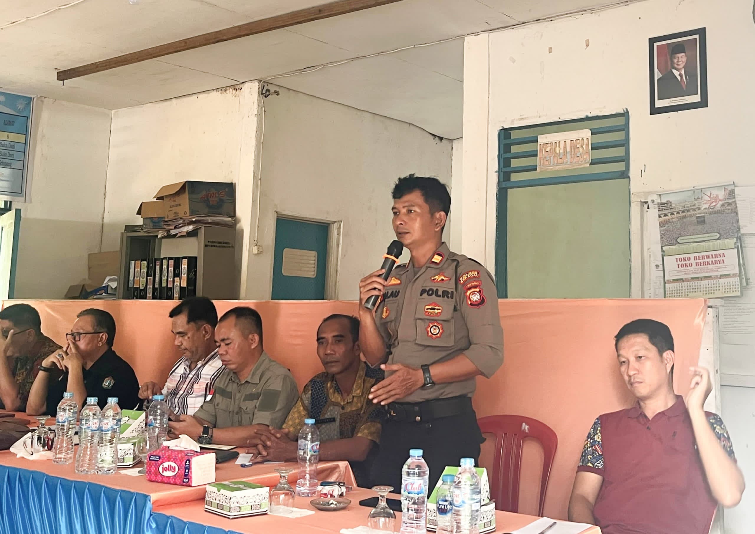 Kasat Samapta Polres Sekadau, IPTU Insan Malau, menghadiri kegiatan sosialisasi replanting kebun inti PT MJP 1 yang digelar di kantor Desa Perongkan, Kecamatan Sekadau Hulu, Kabupaten Sekadau, Kamis (22/5/2025).