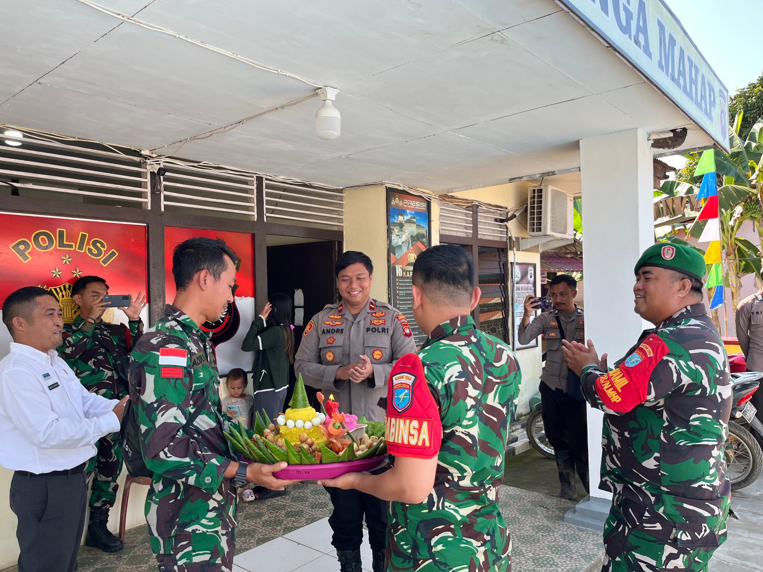 Kegiatan syukuran berlangsung di Kantor Polsek Nanga Mahap, Kecamatan Nanga Mahap, Kabupaten Sekadau. Hadir dalam kegiatan tersebut Kapolsek Nanga Mahap IPDA Andre, S.Tr.K., Plh Danramil Nanga Mahap Serma Muh. Ardi Saputra, serta perwakilan Camat Nanga Mahap, Kasi Kesra dan Sosbud/Analis Pembangunan Meizi Riswan, S.E.