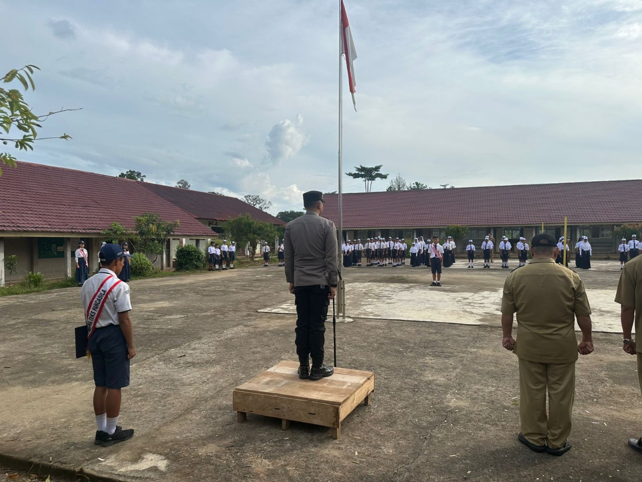 KBO Sat Binmas Polres Sekadau IPDA Firmansyah menjadi pembina upacara bendera di SMP Negeri 10 Sekadau, Kecamatan Sekadau Hilir, Kabupaten Sekadau, pada Senin (6/10/2025). Kegiatan ini dilakukan sebagai upaya menanamkan kedisiplinan serta meningkatkan kesadaran hukum di kalangan pelajar.