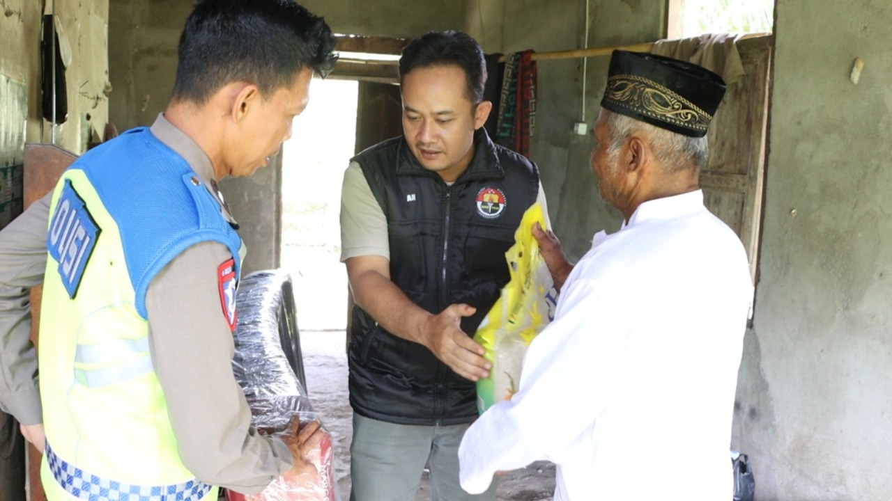 Satlantas Polres Sekadau melaksanakan Program Jumat Berkah dengan mengunjungi Mbah Kadir, lansia yang tinggal seorang diri di Jalan BBI, Desa Mungguk, Kecamatan Sekadau Hilir, Jumat (5/12/2025) sekitar pukul 13.30 WIB.