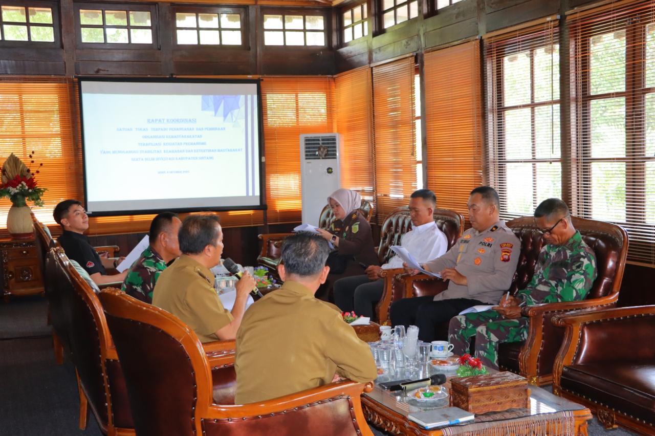 Kabag Ops Polres Sintang Kompol Dedy Fahrudin Siregar, S.I.P, M.A.P.menghadiri langsung rapat koordinasi bersama sejumlah stakeholder terkait pembentukan dan penanganan Satuan Tugas Terpadu Penanganan dan Pembinaan Organisasi Kemasyarakatan Terafiliasi Kegiatan Premanisme yang Mengganggu Stabilitas Keamanan dan Ketertiban, Senin (06/10)