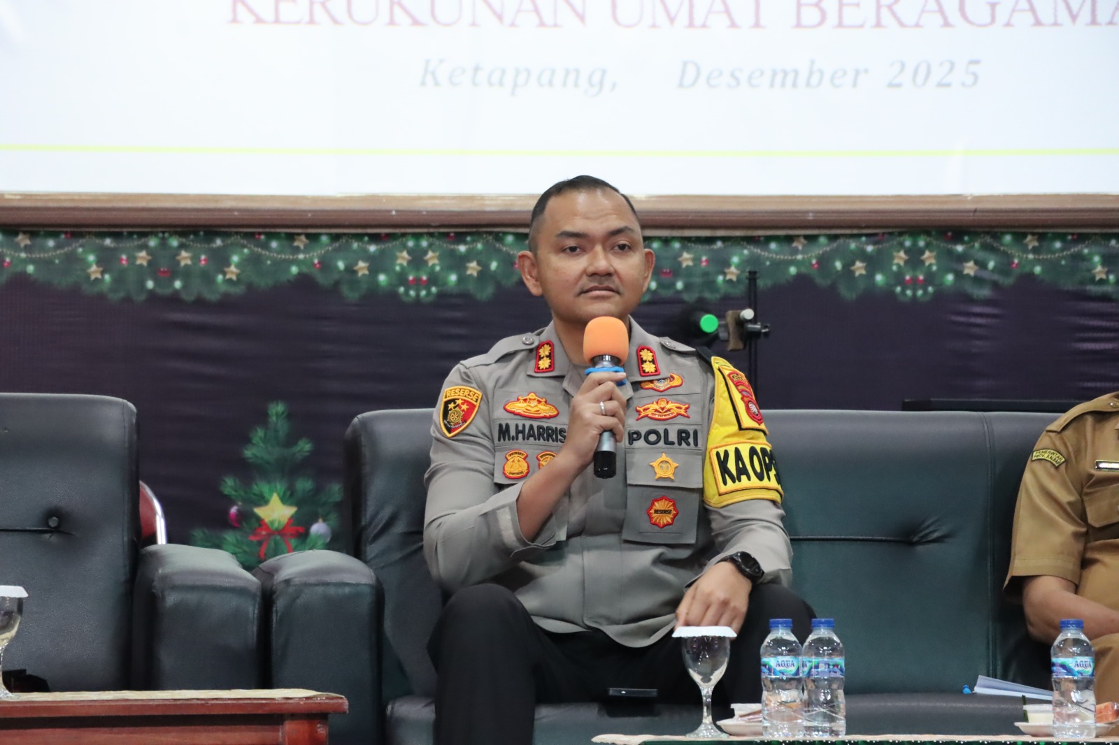 Kapolres Ketapang AKBP Muhammad Harris, S.H., S.I.K., M.I.K., CPHR menghadiri kegiatan Rapat Kerja dan Natal Bersama Persatuan Gereja Kristen (PGK) Ketapang yang mengusung tema “Fondasi Terciptanya Kerukunan Dalam Masyarakat (Ditinjau Dari Sudut Pandang Polisi Sebagai Aparat Keamanan Masyarakat)”. Kegiatan tersebut berlangsung dengan penuh khidmat, hangat, dan sarat nilai kebersamaan, pada Senin (29/12/2025).