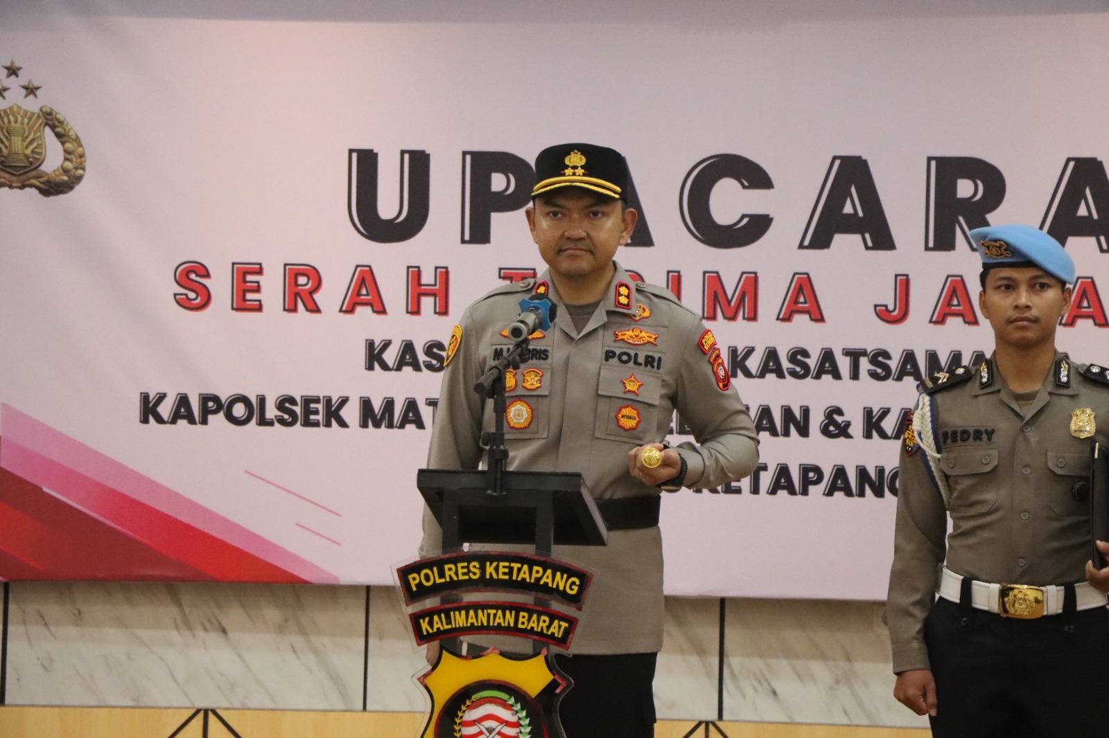 Kapolres Ketapang, AKBP Muhammad Harris, S.H., S.I.K., M.I.K., CPHR., memimpin upacara serah terima jabatan (sertijab) Kasat Samapta, Kasat Intelkam, Kapolsek Matan Hilir Selatan dan Kapolsek Jelai Hulu. Upacara sertijab tersebut digelar di Aula Mapolres Ketapang di Jalan Brigjend Katamso Nomor 01 Ketapang, Kamis pagi (11/09/2025).