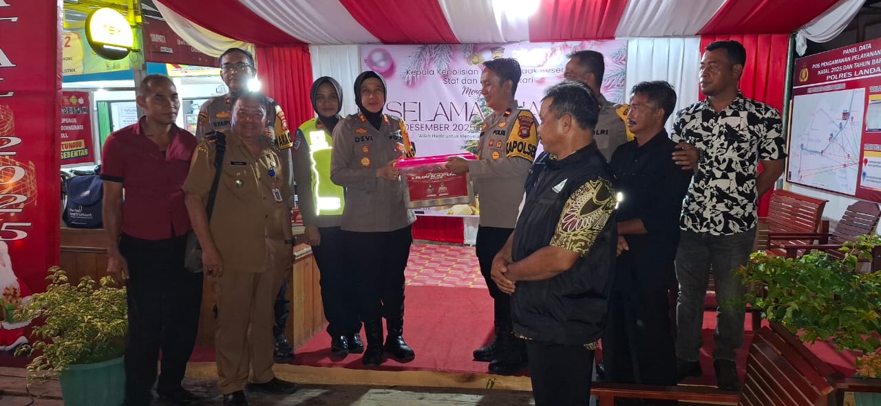 Polres Landak Polda Kalbar Dalam rangka memastikan kesiapan pengamanan dan pelayanan Perayaan Natal 2025 dan Tahun Baru 2026 (Nataru), Kapolres Landak AKBP Devi Ariantari, S.H., S.I.K., melaksanakan kunjungan kerja supervisi ke Pos Pengamanan Pelayanan Nataru 2025 wilayah Kecamatan Mempawah Hulu, Kabupaten Landak, pada Selasa (23/12/2025) sekitar pukul 18.00 WIB.
