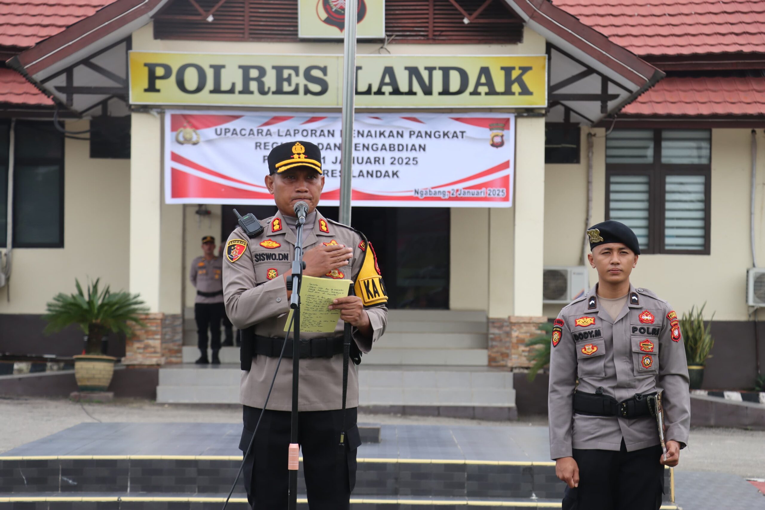 Kapolres Landak AKBP Siswo Dwi Nugroho, S.H., S.I.K. juga menambahkan bahwa kenaikan pangkat ini merupakan bukti pengakuan institusi atas dedikasi dan pengabdian para personel.