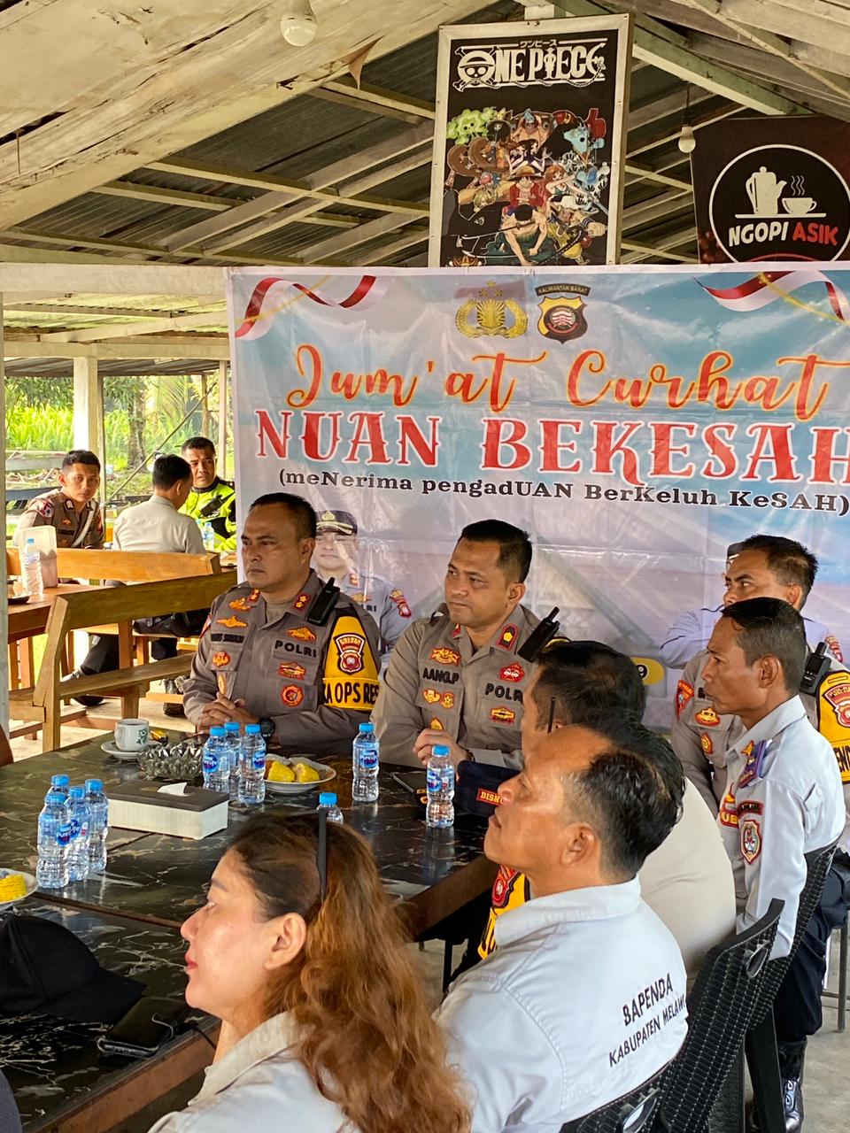 *Polres Melawi Polda Kalbar* – Dalam rangka mempererat hubungan antara Polri dengan masyarakat, Kapolres Melawi, AKBP Harris Batara Simbolon, S.I.K., S.H., M.Tr.Ospla, didampingi Wakapolres Melawi, Kompol Aang Permana, S.I.P., S.H., M.A.P., serta Para Pejabat Utama (Pju) Polres Melawi, menggelar kegiatan Jumat Curhat dengan tema **”Nuan Bekesah”** di Warung Kopi Bundaran, Jumat (28/11/2025).