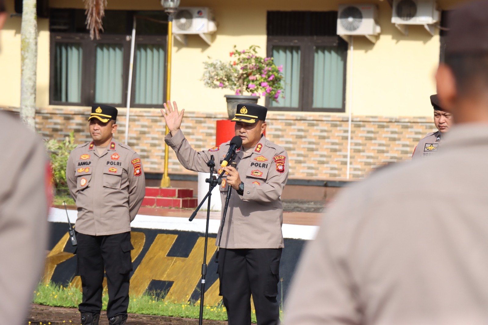 Kapolres Melawi menyampaikan arahan kepada personel berkenaan dengan pelaksanaan tugas dan hal yang tidak akan di toleransinya.