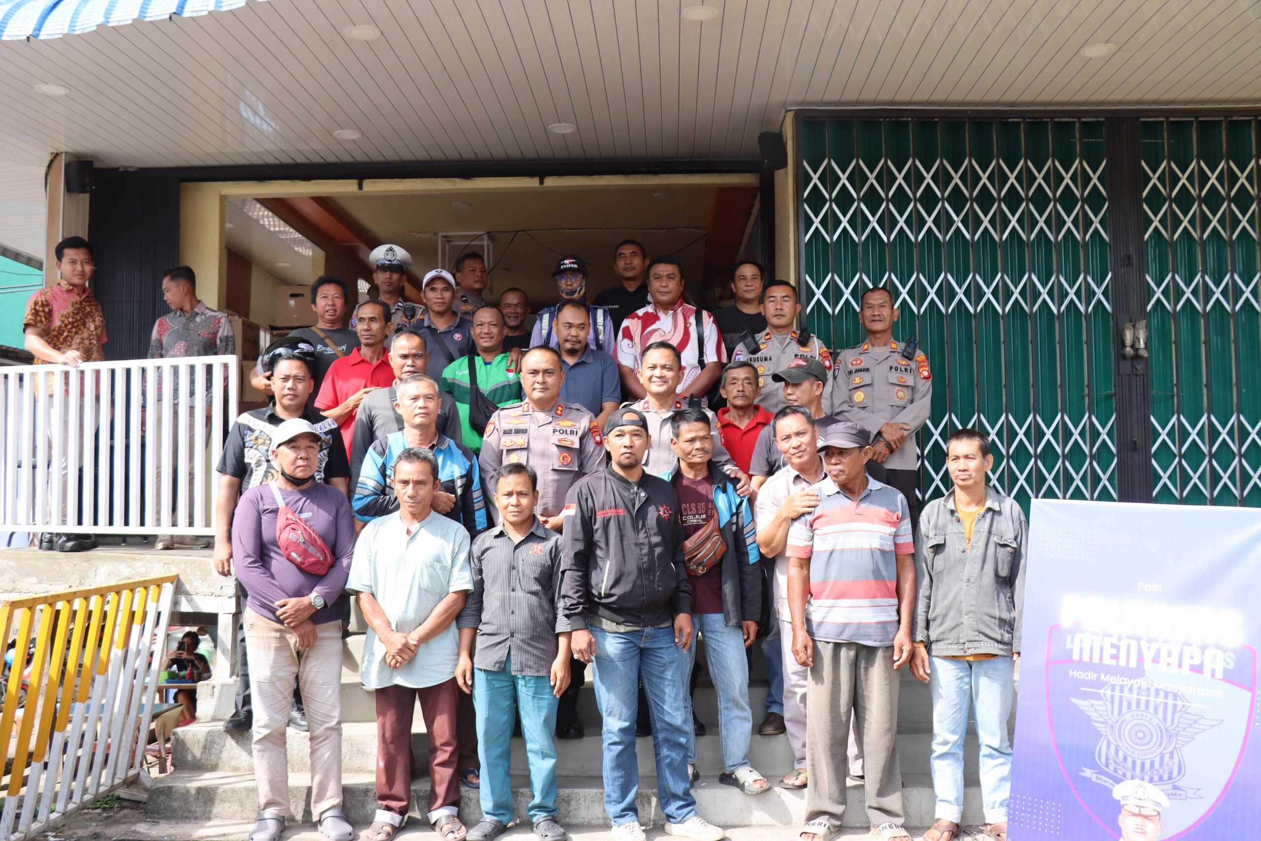 Polres Melawi Polda Kalbar – Kapolres Melawi Polda Kalbar AKBP Harris Batara Simbolon, S.I.K., S.H., M.Tr.Opsla di dampingi Waka Polres Melawi Kompol Aang Permana, S.I.P., S.H., M.A.P, dan pejabat utama melaksanakan Jumat Curhat meNerima pengadUAN BErKELuh KEsah (Nuan Berkesah) bersama Ojek Melawi (Omel) di warkop Alvaro, Jumat (3/10/25).