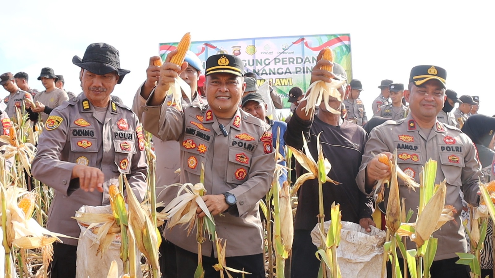 “Hari ini kami panen jagung dan membantu kelompok tani, harapan utama hasil sesuai dengan harapan,” ujar AKBP Harris.