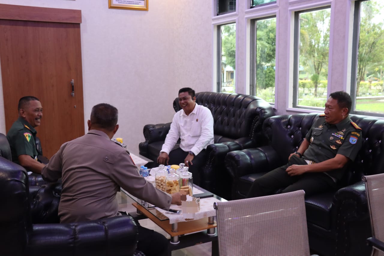 Polres Melawi Polda Kalbar – Kapolres Melawi AKBP Harris Batara Simbolon, S.I.K., S.H., M.Tr.Opsla di dampingi Kasat Reskrim AKP Ambril, S.H., S.A.P menerima kunjungan kerja (Kunker) dan silaturahmi Komandan Detasemen Polisi Militer (Dandenpom) XII/1- Stg Letkol Cpm Muh.Wiryawan.R., S.H., M.H bersama Komandan Sub Detasemen Polisi Militer (Dansubdenpom) XII/1-3 Mlw Lettu Cpm Almujib Priyono di ruang kerja Kapolres Melawi, Senin (5/5/25).