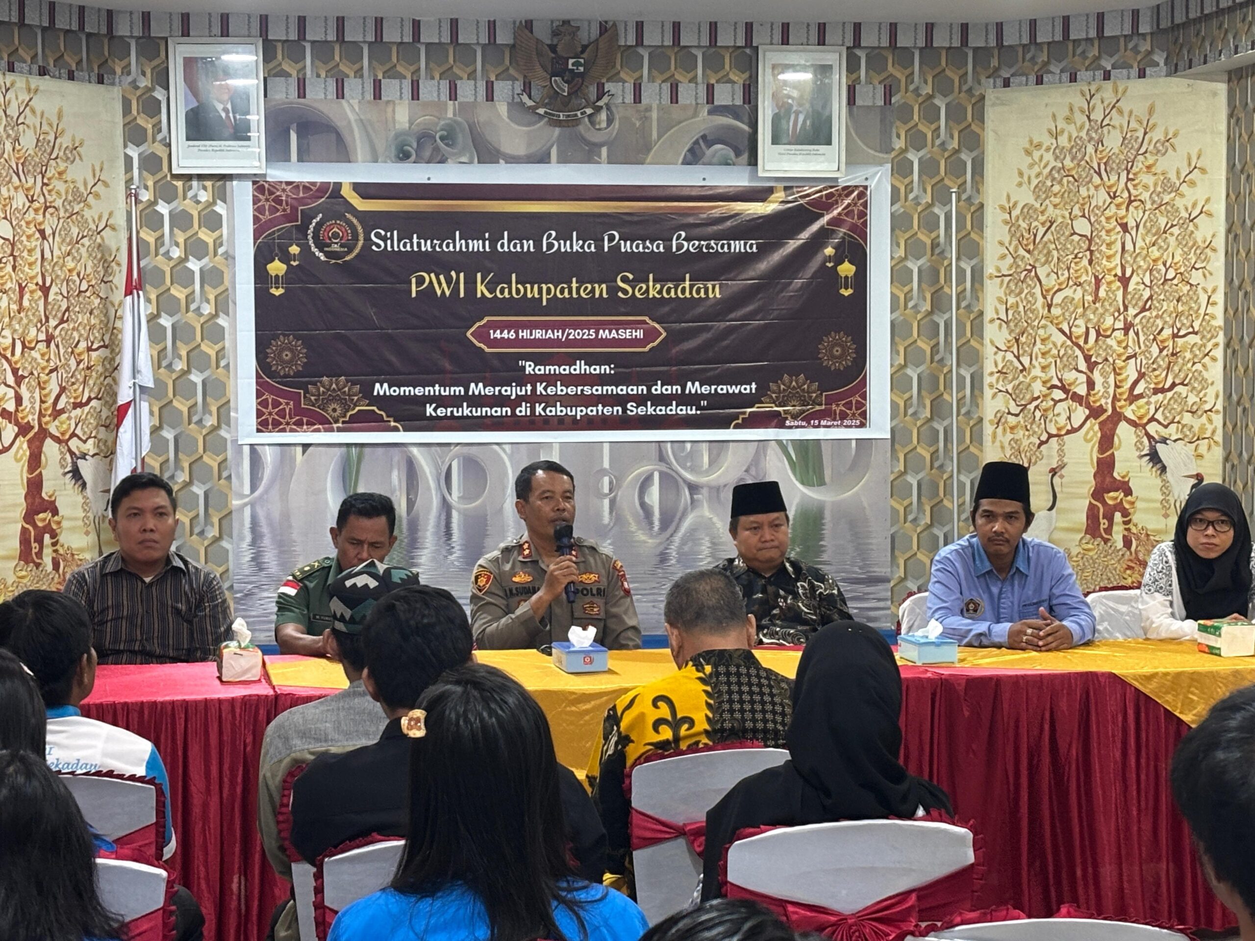 Kapolres Sekadau, AKBP I Nyoman Sudama, menghadiri acara silaturahmi dan buka puasa bersama yang diselenggarakan oleh Persatuan Wartawan Indonesia (PWI) Kabupaten Sekadau pada Sabtu (15/3/2025).
