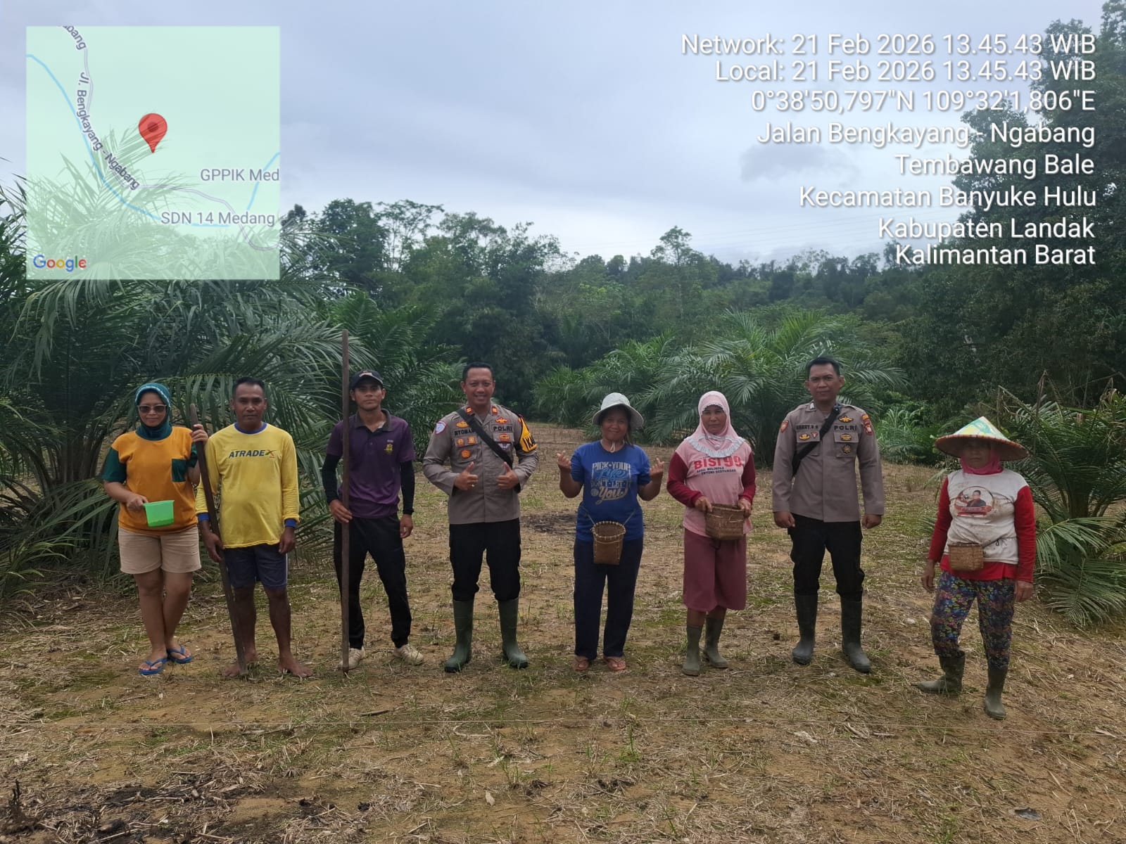 POLRES LANDAK – MENYUKE, POLDA KALBAR, Kegiatan penanaman Jagung pada hari Sabtu tanggal 21 Februari 2026 sekitar pukul 11.30 wib, bertempat di lahan milik bapak Dedi di Dusun medang Desa Padang pio Kecamatan Banyuke Hulu Kabupaten Landak.