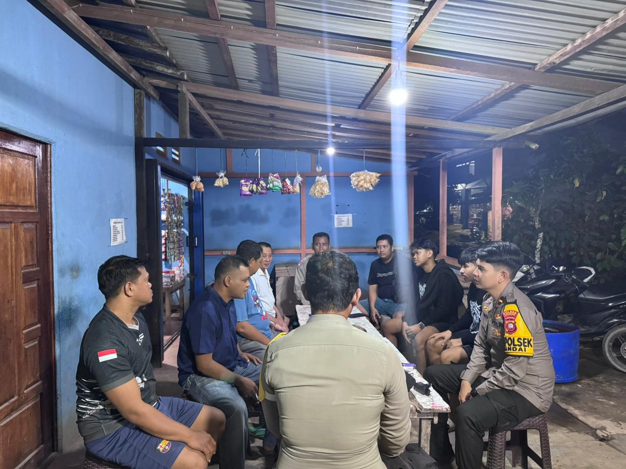 Kapolsek Sandai, IPDA Fransiscus Edwin Lie Worabay, S.Tr.K., M.Si., beserta anggota melaksanakan kegiatan “Jum’at Curhat” bertempat di Warung Kopi (Warkop) Simpang 3, Jalan Trans Kalimantan, Desa Sandai, Kecamatan Sandai, Jum’at 17 Oktober 2025.