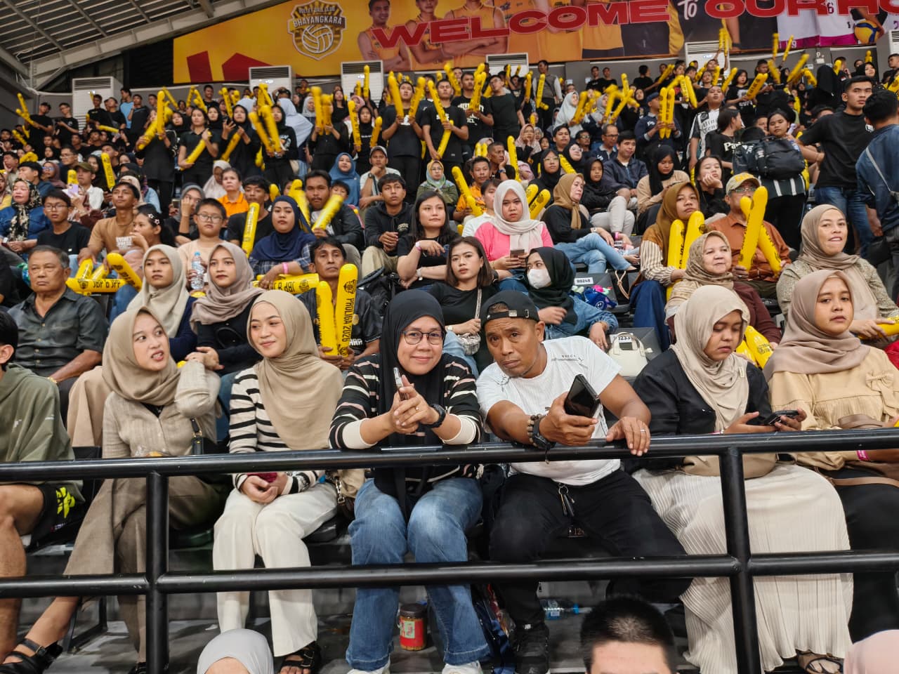 Kehadiran suporter dari kalangan ibu-ibu menjadi warna tersendiri dalam keriuhan di dalam gelanggang. Salah satunya adalah Sukinem (52), warga asal Sungai Raya yang datang bersama rombongan pengajiannya khusus untuk menonton aksi pemain idola mereka.