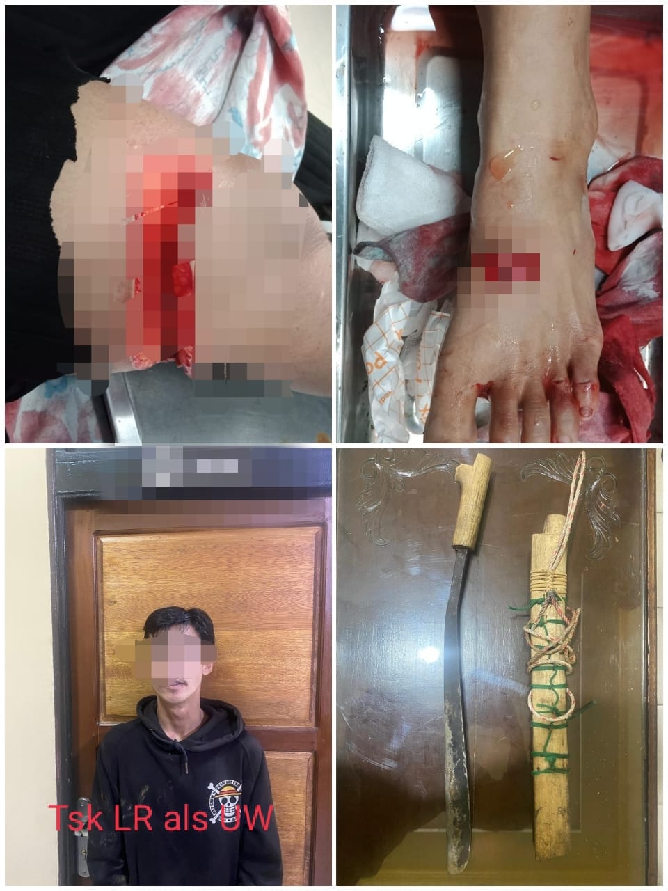 Saat bersamaan sdri YY alias Y (23) yang merupakan adik ipar LR alias UW dan sdri YPT berusaha melerai dalam kondisi penerangan kurangnya pencahayaan lampu senjata tajam yang di pegang sdr LR alias UW melukai sdri YPT sehingga mengalami luka pada paha kanan bawah, sdri YY mengalami luka robek pada kaki kiri dan sdr BKG mengalami luka pada jari kaki jempol kiri yang selanjutnya dilerai warga dan korban di bawa ke RSUC Citra Husada guna mendapatkan pertolongan medis.