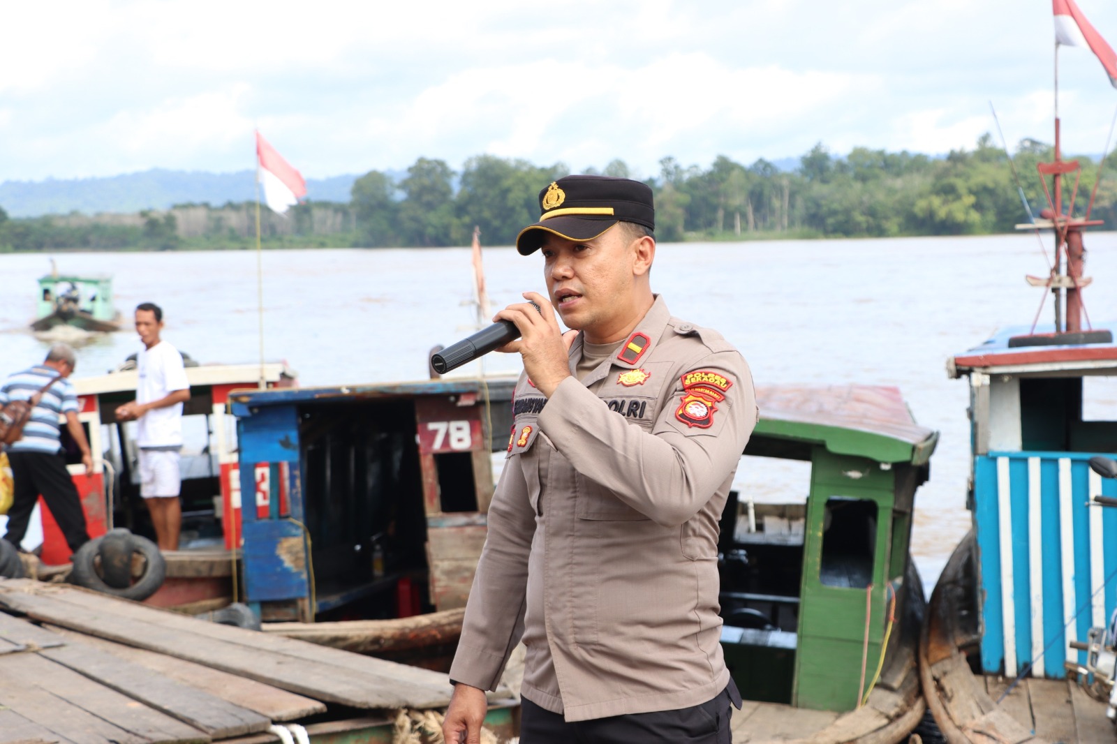 Dalam kegiatan itu, IPDA Firmansyah menyampaikan edukasi dan imbauan menggunakan alat pengeras suara kepada para penambang motor air di penyeberangan sungai. Pengemudi dan penumpang diimbau untuk selalu menggunakan jaket pelampung saat menyeberangi sungai menggunakan motor air.