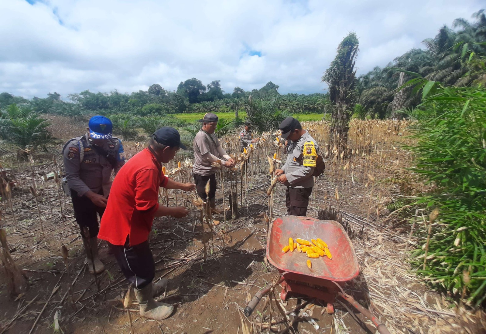 Proses panen dilaksanakan secara gotong royong oleh berbagai pihak yang terlibat langsung di lapangan. Hadir dalam kegiatan tersebut Kapolsek Bonti IPTU Suparman beserta jajaran anggota Polsek Bonti, PPL Desa Kampuh Suvrianto, pemilik lahan Matheus Budi Santoso, serta anggota Kelompok Tani Mogen Berkat Desa Kampuh.