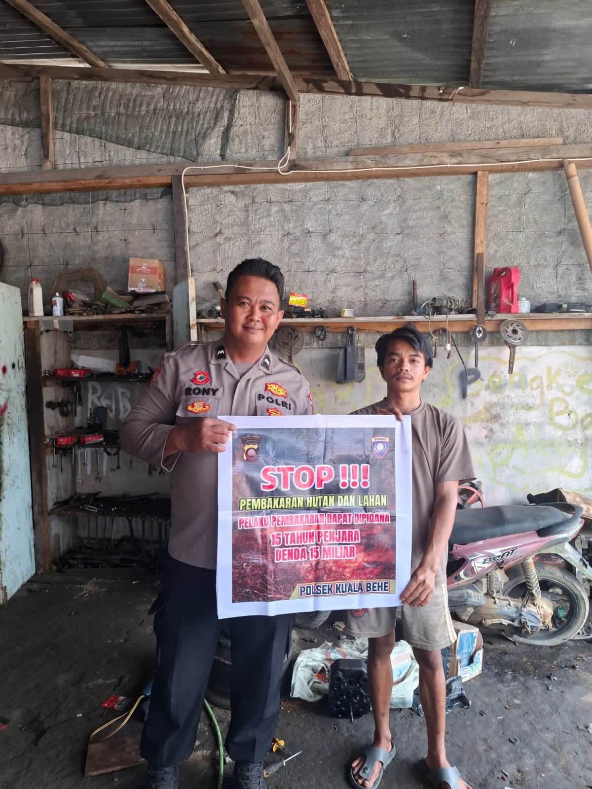 Dalam kegiatan tersebut, Aipda Roni Riansyah menyampaikan himbauan kepada masyarakat agar tidak membuka lahan dengan cara membakar, serta mengajak warga untuk bersama-sama menjaga lingkungan dari ancaman karhutla. Himbauan disampaikan secara langsung kepada masyarakat dengan menggunakan spanduk himbauan karhutla, sehingga pesan pencegahan dapat lebih mudah dipahami dan diingat.