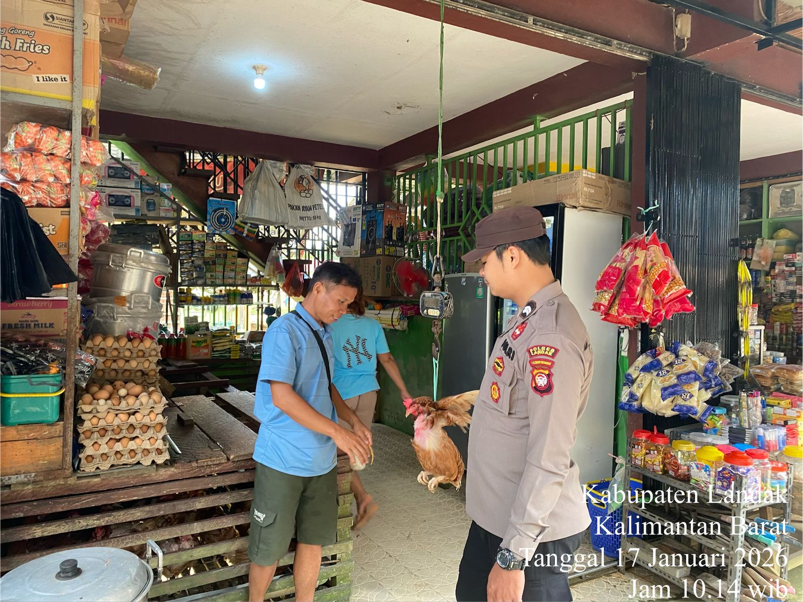 Polsek Meranti ~ Polres Landak ~ Polda Kalbar ~ Dalam rangka menjaga situasi keamanan dan ketertiban masyarakat (kamtibmas), jajaran Polsek Meranti melaksanakan patroli siang dengan menyambangi para pedagang di wilayah hukumnya, termasuk pedagang ayam di pasar setempat.