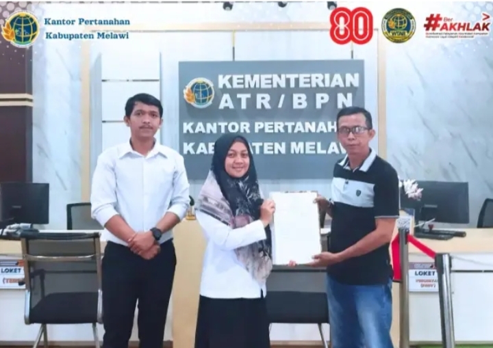 Program Pendaftaran Tanah Sistematis Lengkap (PTSL) kembali memberikan manfaat nyata bagi masyarakat. Kantor Pertanahan Kabupaten Melawi menyerahkan sebanyak 81 Sertipikat Tanah Elektronik kepada penerima manfaat, sebagai bentuk kepastian hukum atas kepemilikan tanah.