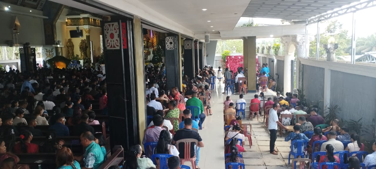 Ibadah Misa Natal tersebut dipimpin oleh Romo Ignatius Made Maju Jaya dengan tema ibadah “Allah Hadir untuk Menyelamatkan Keluarga”. Kegiatan ibadah diikuti oleh sekitar 800 jemaat umat Kristiani yang hadir dengan penuh khidmat dan tertib.
