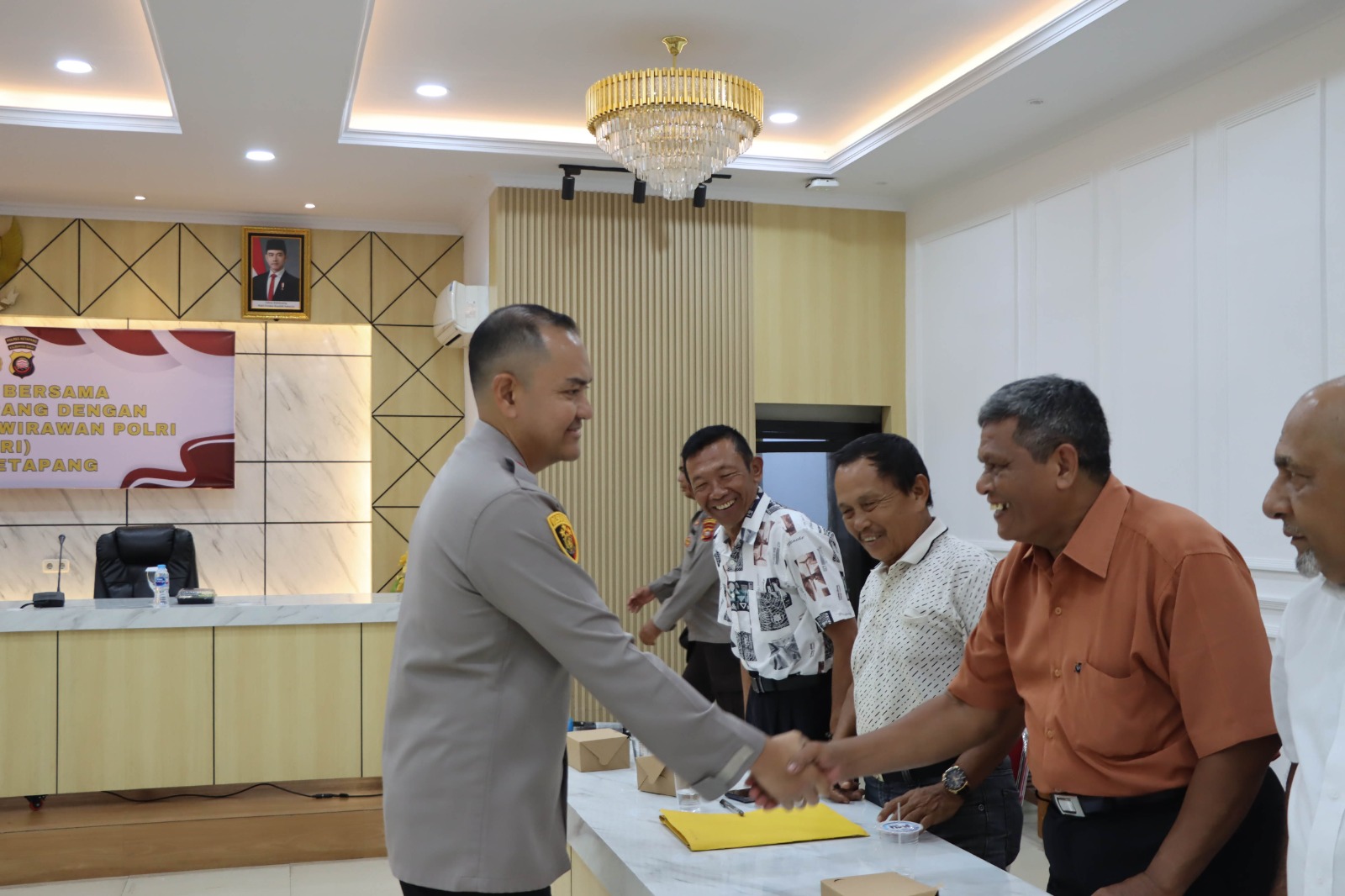 Kapolres Ketapang Muhammad Harris, S.H., S.I.K., M.I.K., CPHR, melaksanakan kegiatan silaturahmi bersama para purnawirawan Polri sebagai bentuk penghormatan dan mempererat tali persaudaraan antara personel aktif dengan para senior yang telah purna tugas di aula Polres Ketapang, Selasa, (21/04/2026).