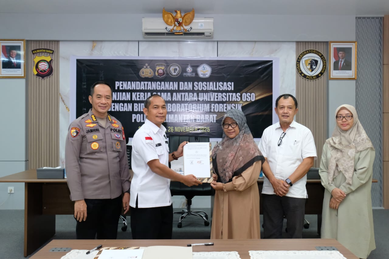 Bidang Laboratorium Forensik (Bidlabfor) Polda Kalimantan Barat memperkuat kualitas sumber daya manusia forensik melalui penandatanganan perjanjian kerja sama dengan Universitas OSO Pontianak, Rabu (26/11). Kegiatan yang digelar di gedung Bidlabfor Polda Kalbar ini dipimpin oleh Kabidlabfor Polda Kalbar AKBP Admiral, S.T.
