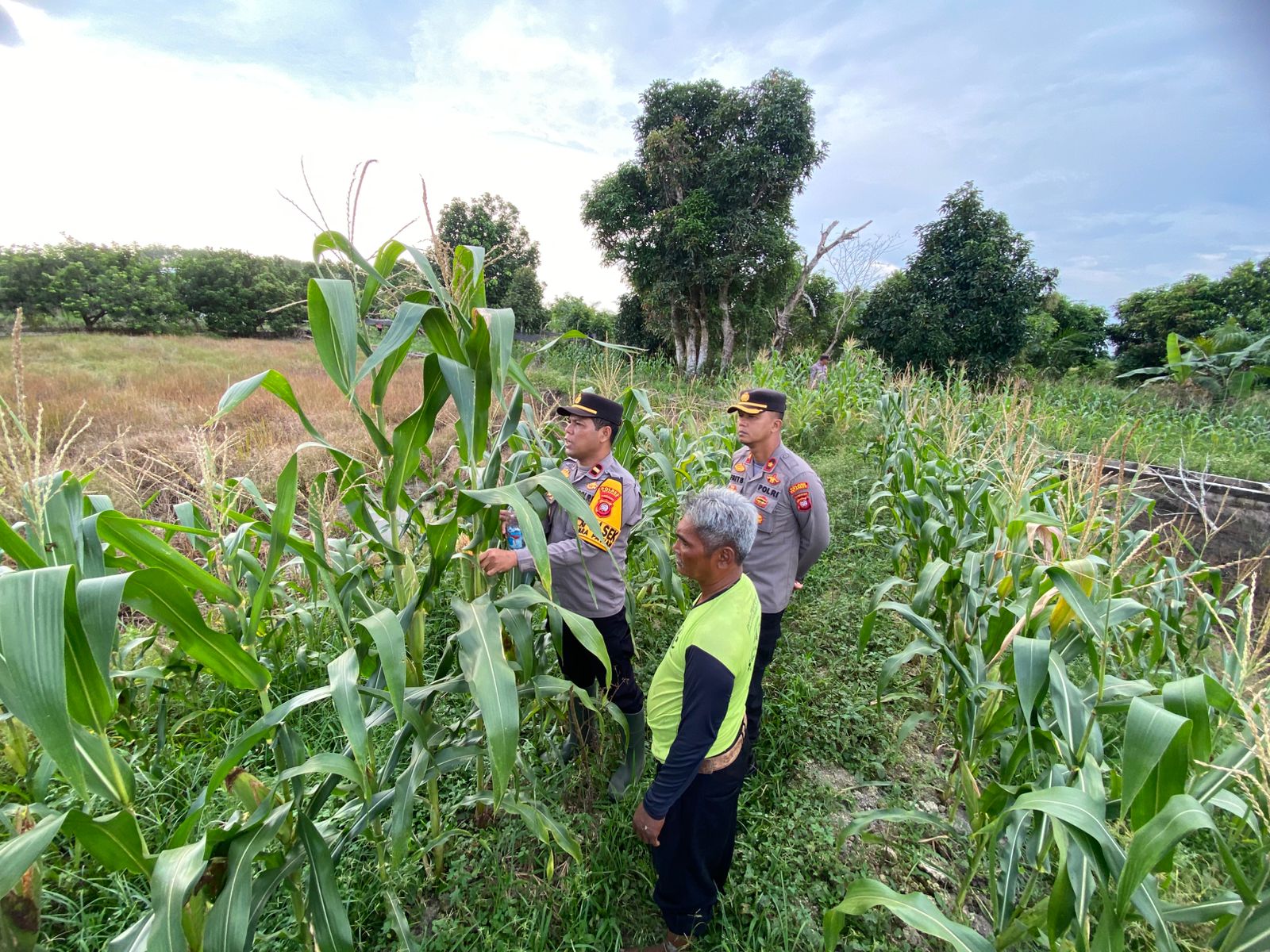 Waka Polres Ketapang Kompol Frits Orlando Siagian,S.I.K.,M.H bersama Kapolsek Muara Pawan Ipda Lukman beserta anggota lainnya melaksanakan pengecekan lahan jagung di Desa Suka Maju , Kecamatan Muara Pawan, Kabupaten Ketapang, Minggu (11/05/2025).