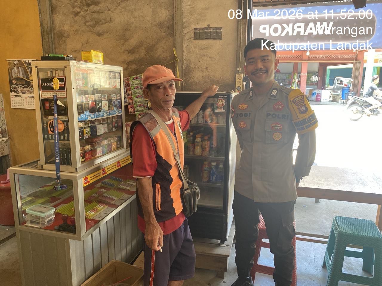 Kegiatan tersebut dilaksanakan oleh Brigadir Yogi dengan menyambangi para tukang parkir serta pedagang yang berada di Pasar Karangan pada Minggu (8/3/2026). Dalam kesempatan tersebut, Brigadir Yogi menyampaikan pesan-pesan kamtibmas kepada masyarakat agar selalu bersama-sama menjaga keamanan lingkungan.