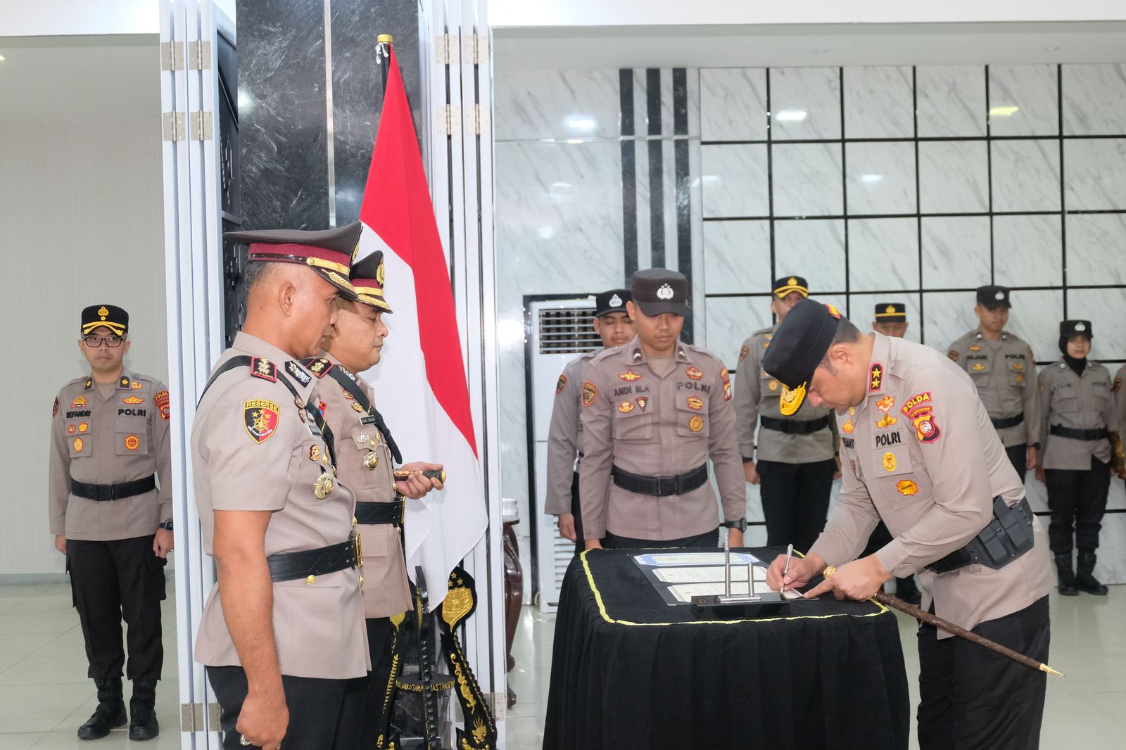 Bertempat di Balai Kemitraan Polda Kalbar, Kapolda Kalbar Irjen Pol Pipit Rismanto, S.I.K., M.H., memimpin upacara serah terima jabatan (Sertijab) sejumlah pejabat di lingkungan Polda Kalbar pada Rabu (09/04/2025), yang dimulai pukul 09:00 WIB.