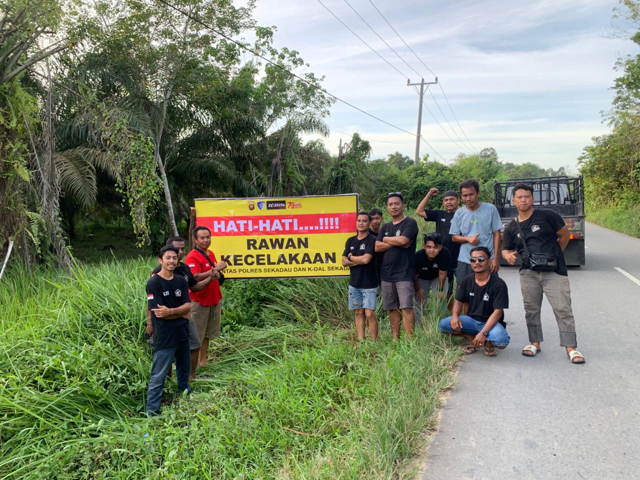 Satuan Lalu Lintas (Satlantas) Polres Sekadau bersama Komunitas Driver All Lawang Kuari memasang spanduk himbauan keselamatan berkendara di sejumlah ruas jalan utama di kota Sekadau, Minggu (19/10/2025).