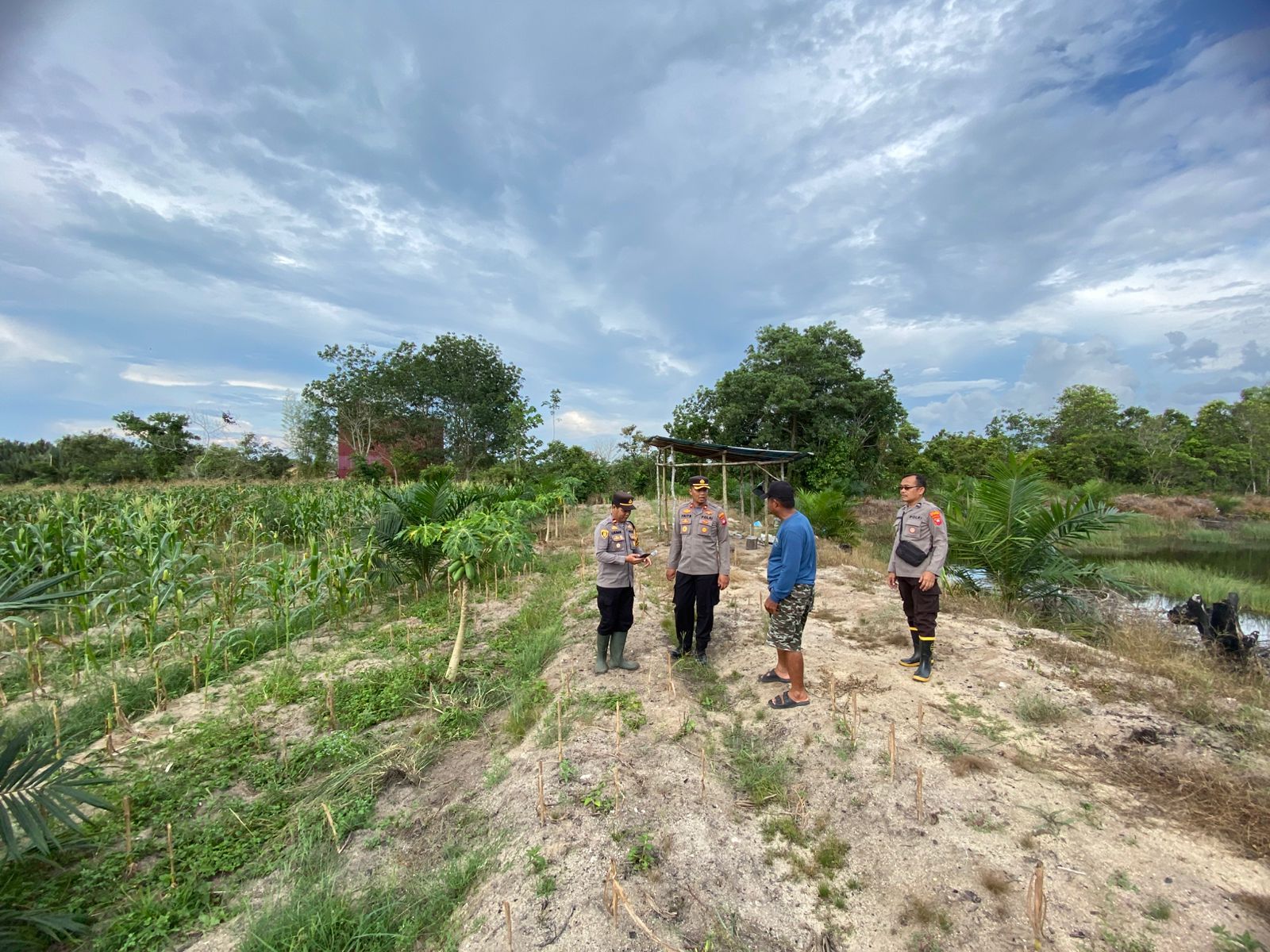 Dalam rangka mendukung program ketahanan pangan nasional, Waka Polres Ketapang Kompol Frits Orlando Siagian, S.I.K,. M.H dengan di dampingi Kapolsek Muara Pawan Ipda Lukman dengan anggota lainnya laksanakan pengecekan dan pemantauan langsung terhadap perkembangan lahan kebun jagung seluas 1 Hektar di Desa Sungai awan Kiri Kec.Muara Pawan, Minggu, (11/05/2025).
