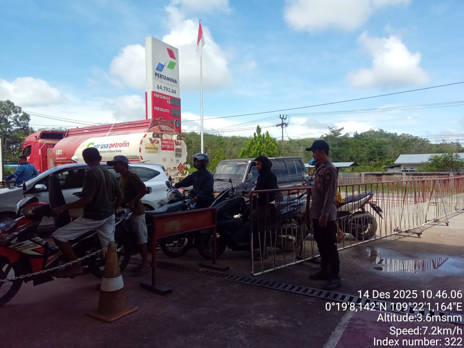 Selain itu, petugas juga melakukan pemantauan di sekitar SPBU Mandor, khususnya terhadap warga yang sedang mengantre pengisian BBM kendaraan bermotor. Kehadiran polisi di lokasi bertujuan untuk mencegah terjadinya gangguan keamanan, mengantisipasi potensi keributan, serta memastikan antrean berjalan tertib dan aman.
