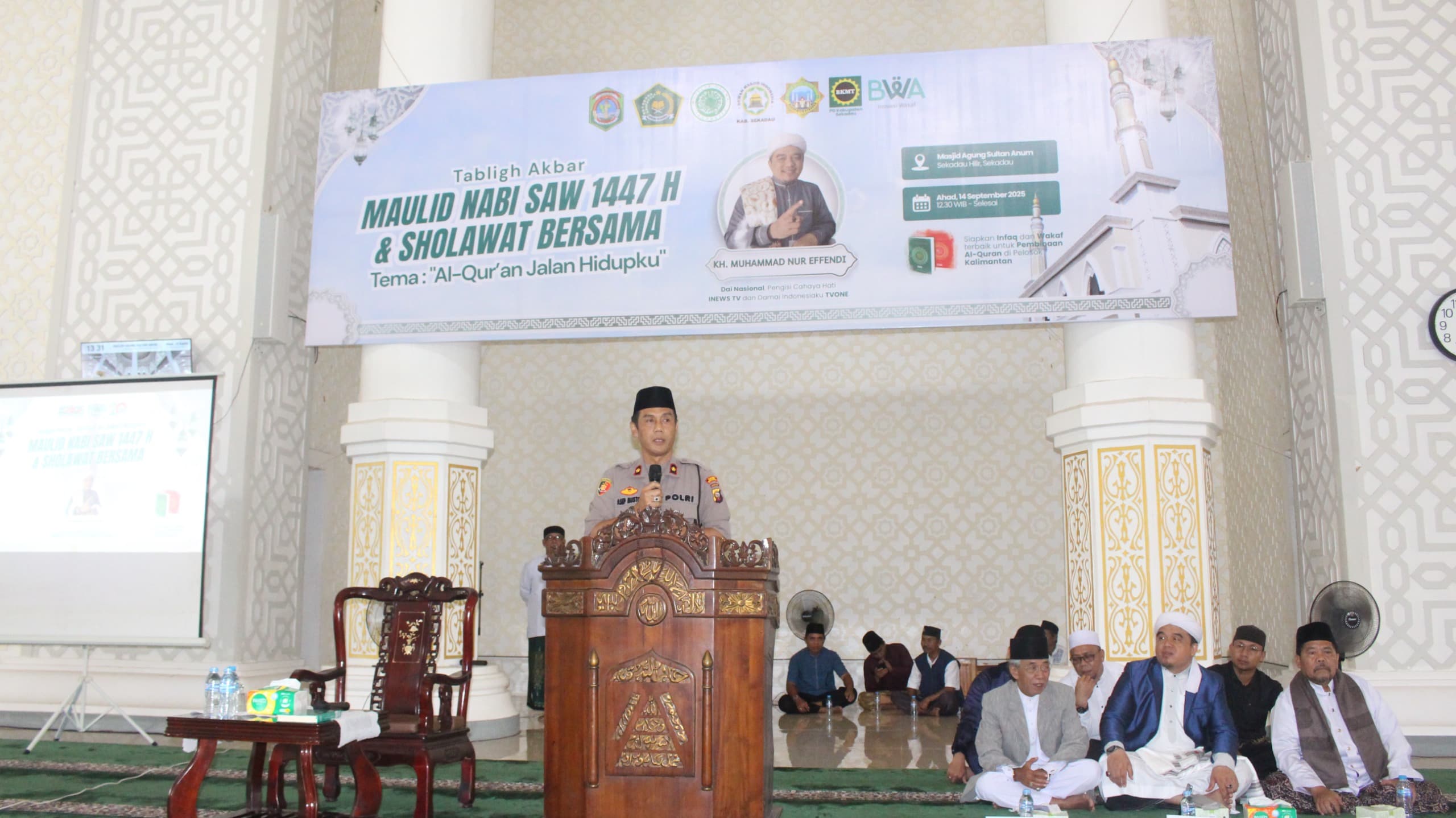 Dengan dukungan pengamanan dari Polres Sekadau, seluruh rangkaian peringatan Maulid Nabi 1447 H di Masjid Agung Sultan Anum berlangsung aman, lancar dan khidmat.