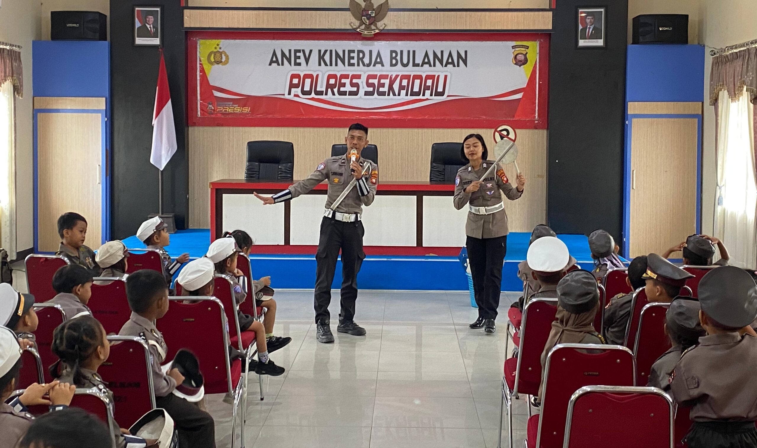 Polres Sekadau melalui Satlantas kembali menggelar kegiatan Polisi Sahabat Anak di Aula Bhayangkara Patriatama, Kamis (21/8/2025). Kegiatan ini diikuti murid TK KB Anak Bangsa Engkersik dan TK Bintang Pertiwi Ensalang, Kecamatan Sekadau Hilir.