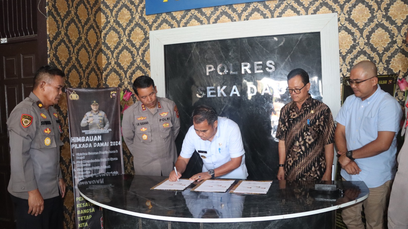 Polres Sekadau bersama Dinas Ketahanan Pangan, Pertanian dan Perikanan Kabupaten Sekadau serta Koperasi Produsen Keling Kumang Agro Sekadau menandatangani perjanjian kerja sama terkait peningkatan ketahanan pangan dan pengawasan distribusi pemasaran komoditas jagung dari petani ke koperasi.