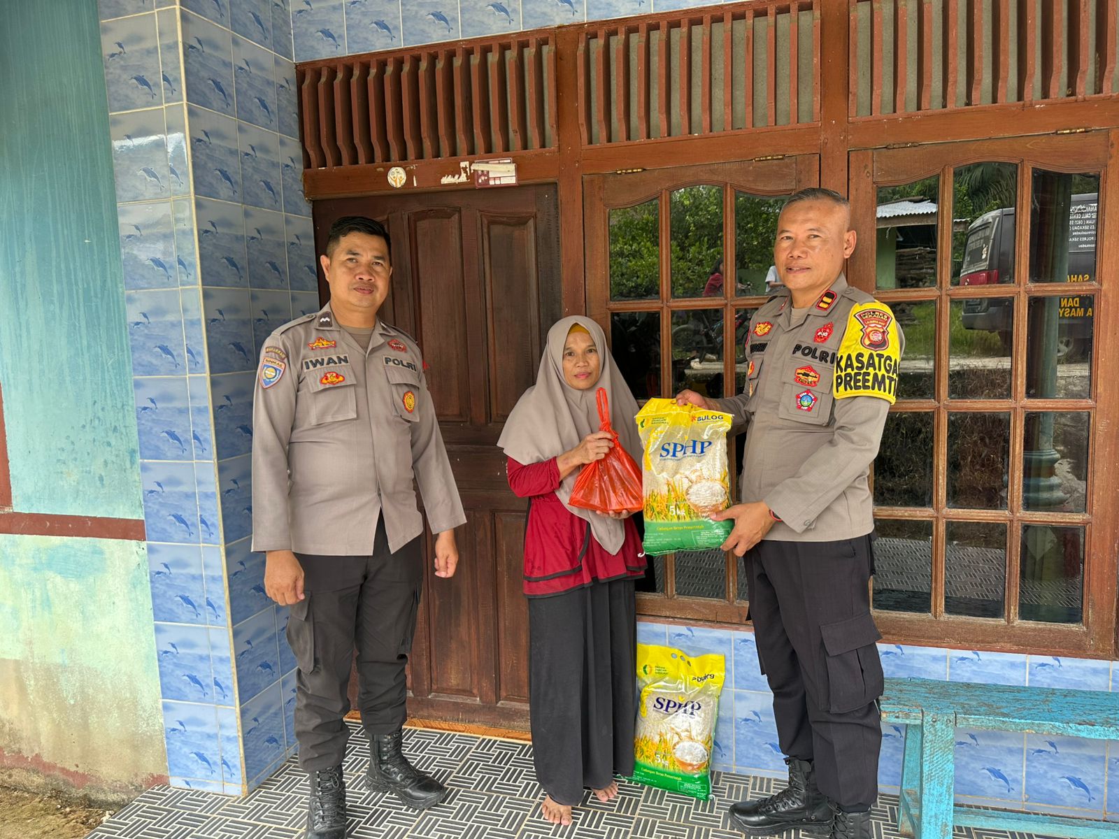 Kasat Binmas Polres Sekadau, IPTU Koderi, memimpin langsung penyerahan bantuan kepada empat lansia. Paket sembako yang disalurkan berisi 10 kilogram beras, satu liter minyak goreng, dan satu kilogram gula pasir.