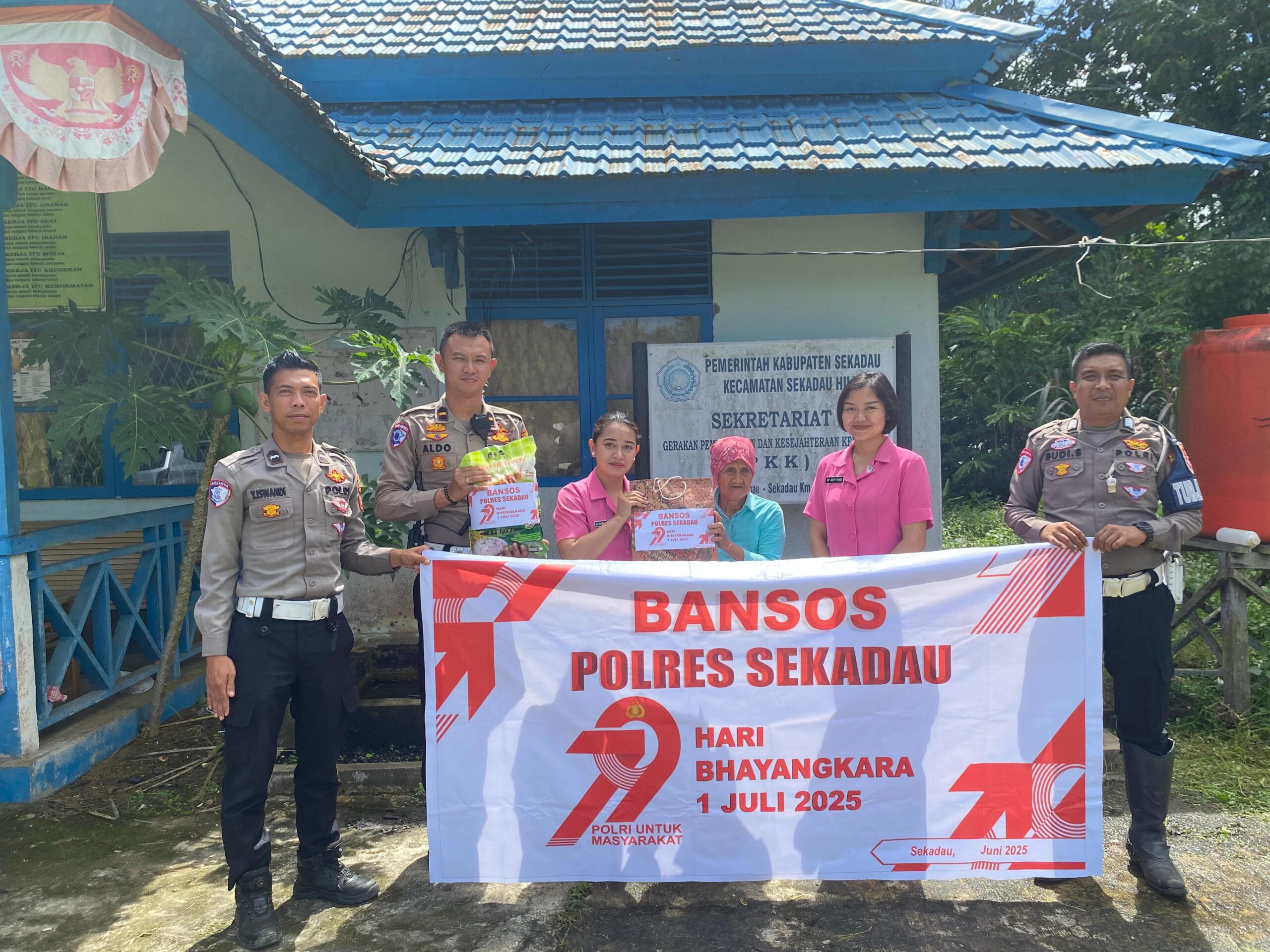 Menyambut Hari Bhayangkara ke-79 yang diperingati setiap 1 Juli, Polres Sekadau menyalurkan bantuan sosial (bansos) kepada masyarakat Desa Ensalang, Kecamatan Sekadau Hilir, Kabupaten Sekadau, Jumat (20/6/2025).