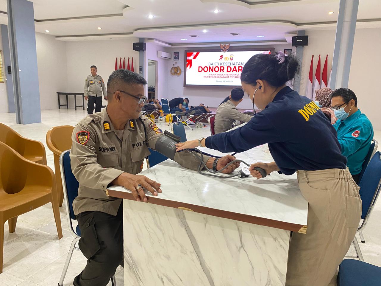 Dalam rangka memperingati Hari Bhayangkara ke-79, Polres Sintang menggelar kegiatan donor darah yang dilaksanakan di Aula Mapolres Sintang pada Rabu (25/6).