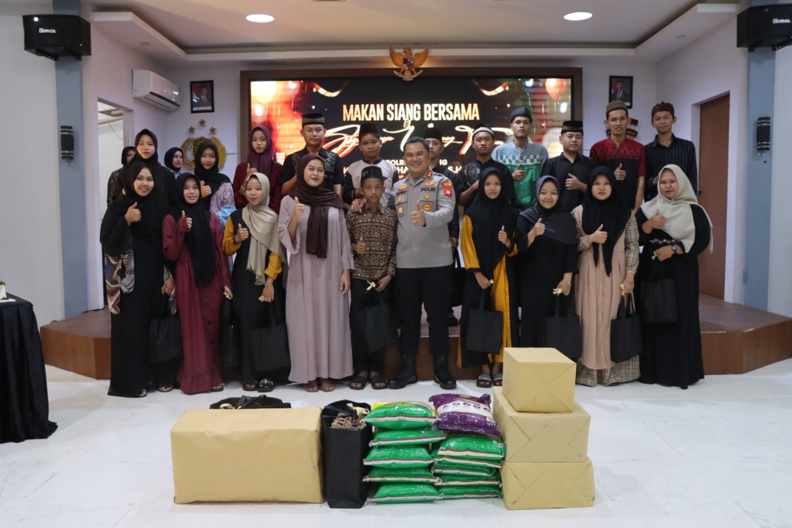 Dalam rangkaian acara, AKBP Sanny Handityo tampak menyerahkan bantuan berupa paket kebutuhan pokok serta santunan kepada anak-anak panti asuhan.