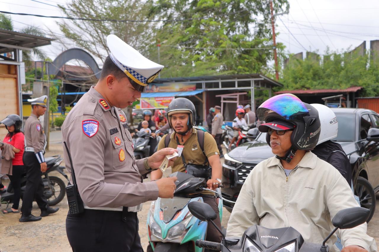 Selain melakukan penindakan, petugas juga aktif menyampaikan imbauan secara humanis kepada para pengendara. Brosur mengenai pentingnya disiplin berlalu lintas turut dibagikan sebagai bagian dari edukasi untuk meningkatkan kesadaran masyarakat.