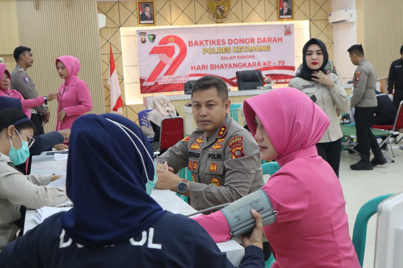 Dalam rangka menyambut Hari Bhayangkara ke-79 yang jatuh pada 1 Juli 2025 mendatang, Kepolisian Resor (Polres) Ketapang menggelar kegiatan bakti kesehatan berupa donor darah yang dilaksanakan di Aula Mapolres Ketapang, Selasa (24/6/2025) Pukul 08.00 Wib. Kegiatan ini diikuti oleh seluruh personil Polres Ketapang dan anggota Bhayangkari Polres Ketapang.